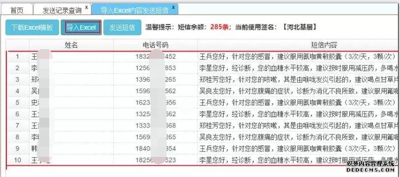今天,又來了10位患者,他們的病很多:有得流感的,有頸椎病的,還有高血糖的。這不,他們又來買藥了。三天兩頭就出問題除了身體虛弱以外,王大夫懷疑可能和用藥習慣及生活習慣也有關系。于是,在病人們走后,他使用公衛(wèi)短信給他們?nèi)喊l(fā)了一些醫(yī)囑。