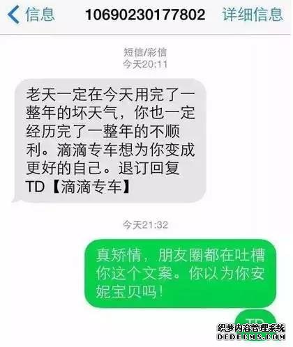 最后,還是滴滴,這條短信有價值的內容其實只是告訴用戶怎么退訂,這是逼用戶退訂的節奏??!