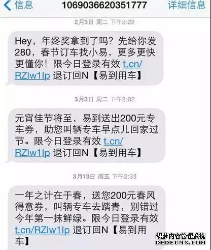 不建議把企業或者產品的名字放在短信最前面的,用戶一看開頭就知道廣告可能不會繼續讀下去了。
